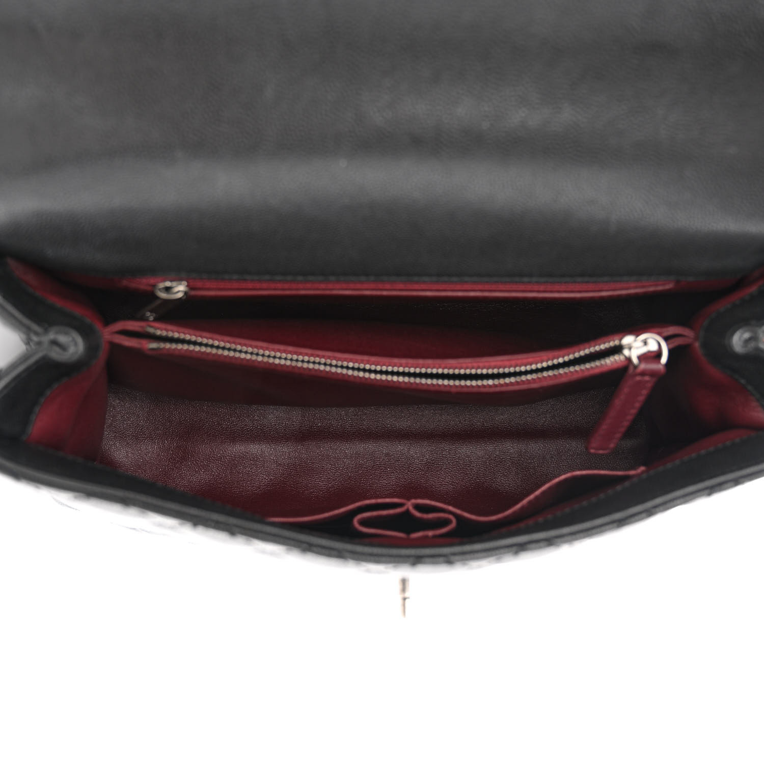 This is an authentic CHANEL Caviar Lizard Quilted Medium Coco Handle Flap in Black. This sleek tote is crafted of diamond quilted caviar leather in black. The shoulder bag features a burgundy rolled lizard embossed leather top handle, a leather threaded ruthenium shoulder strap with a shoulder pad and a CC turn-lock closure. This opens the flap to a partitioned burgundy leather interior with a central zipper compartment.