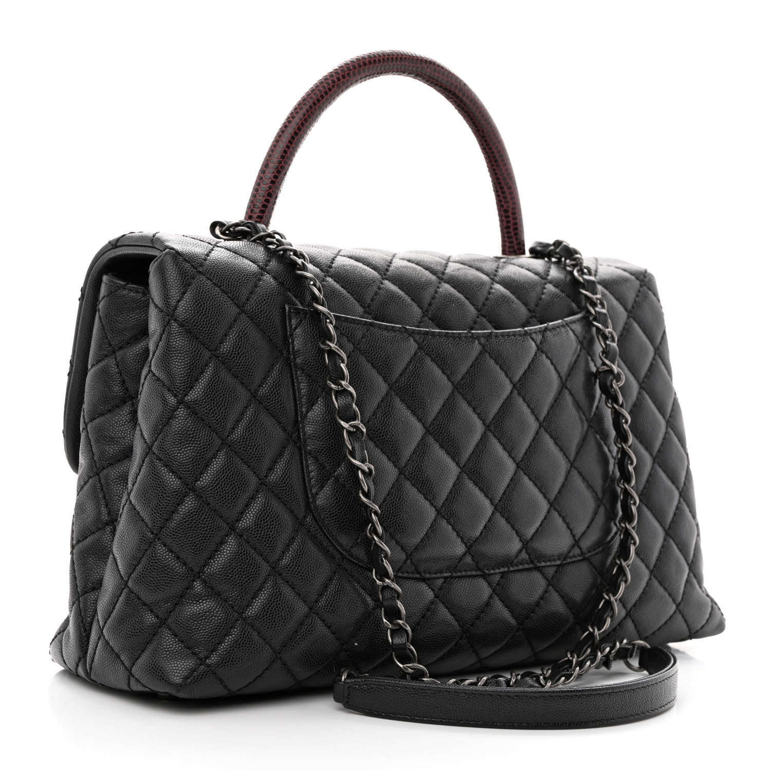 • Chanel Caviar Lizard Quilted Medium Coco Handle Flap Black