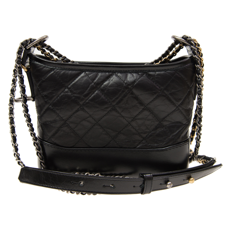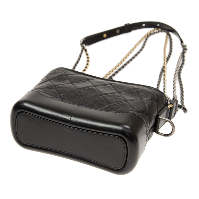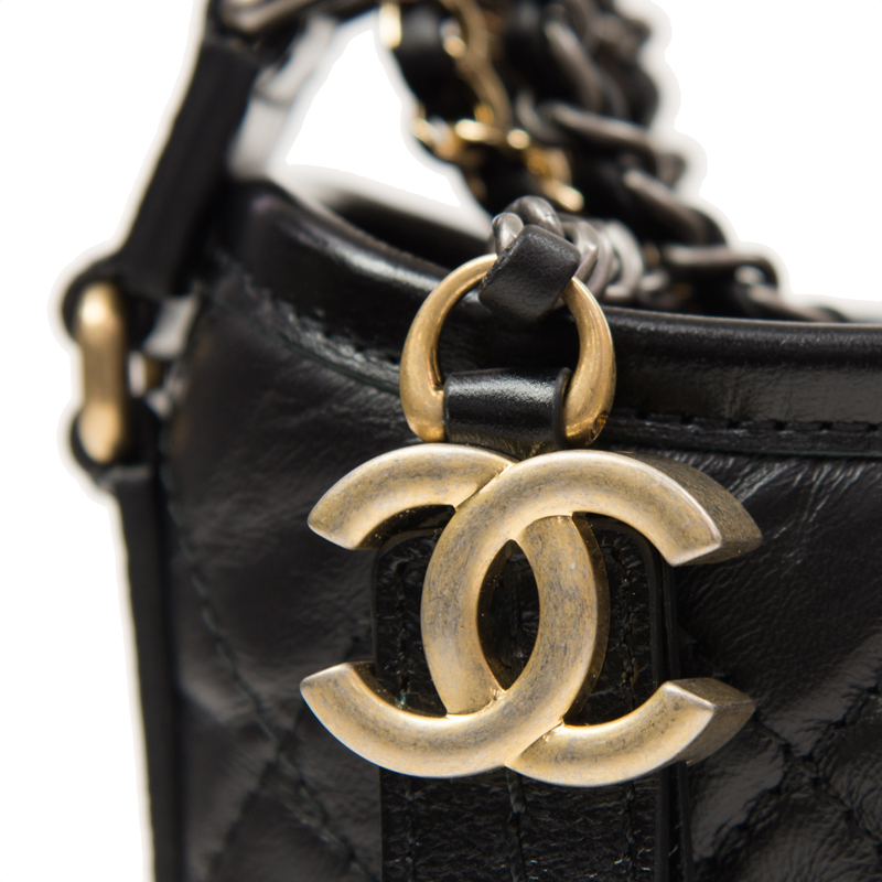 • CHANEL Aged Calfskin Quilted Small Gabrielle Hobo Black