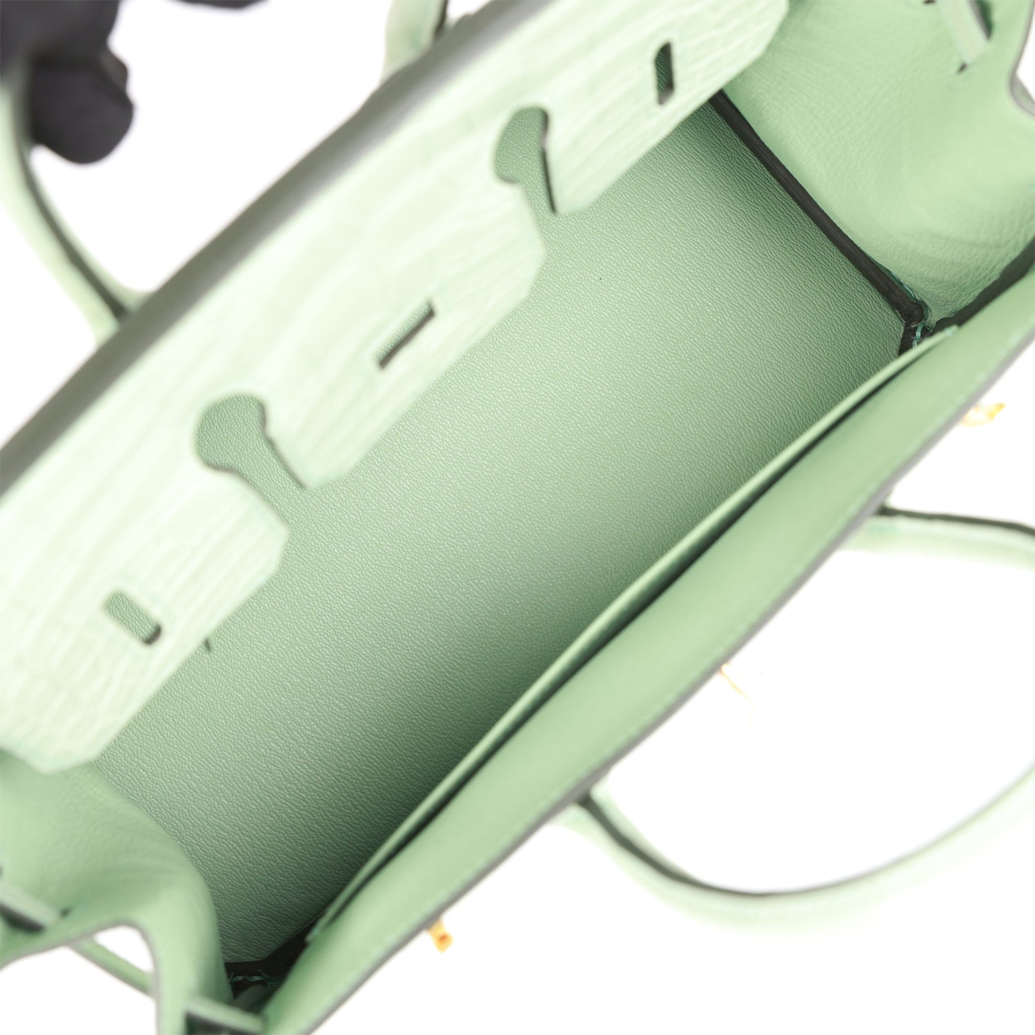 • Hermes Birkin 25 Vert D’Eau Matte Alligator Gold Hardware