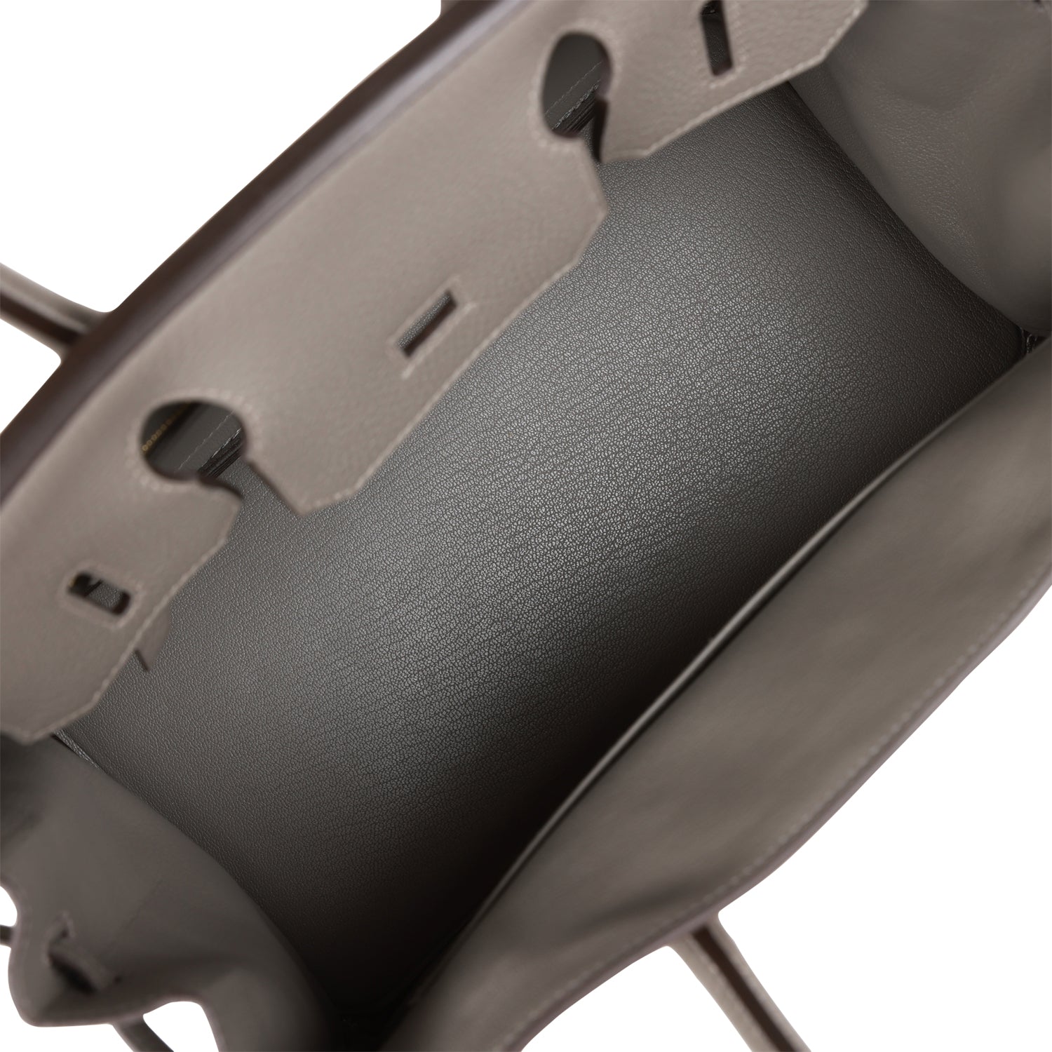 The interior is lined with Gris Meyer chevre and has one zip pocket with an Hermes engraved zipper pull and an open pocket on the opposite side.