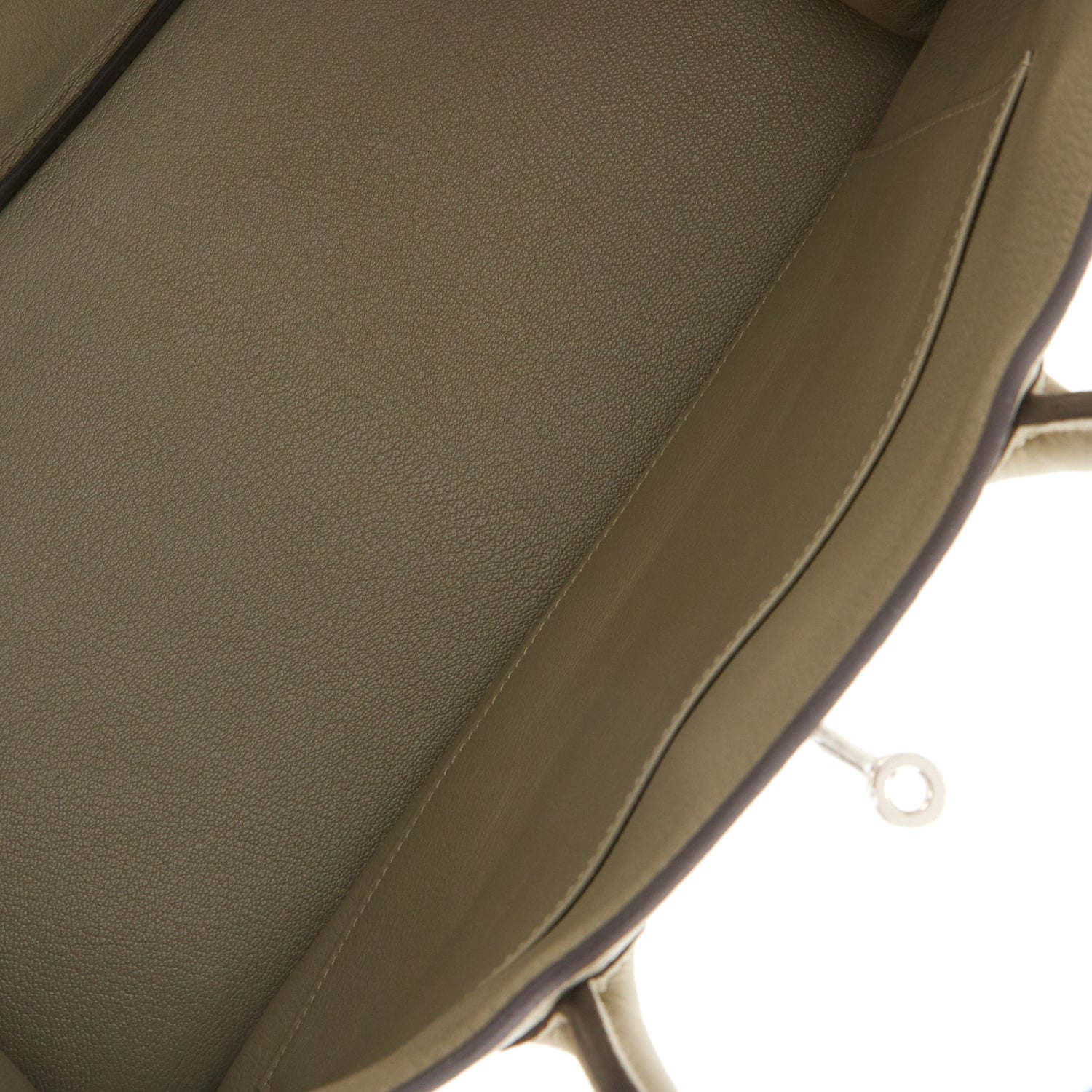 The interior is lined with Sage chevre and has one zip pocket with an Hermes engraved zipper pull and an open pocket on the opposite side.